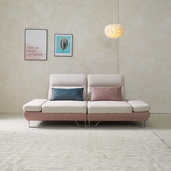 샤르니 3인용 직선형 소파 핑크+아이보리