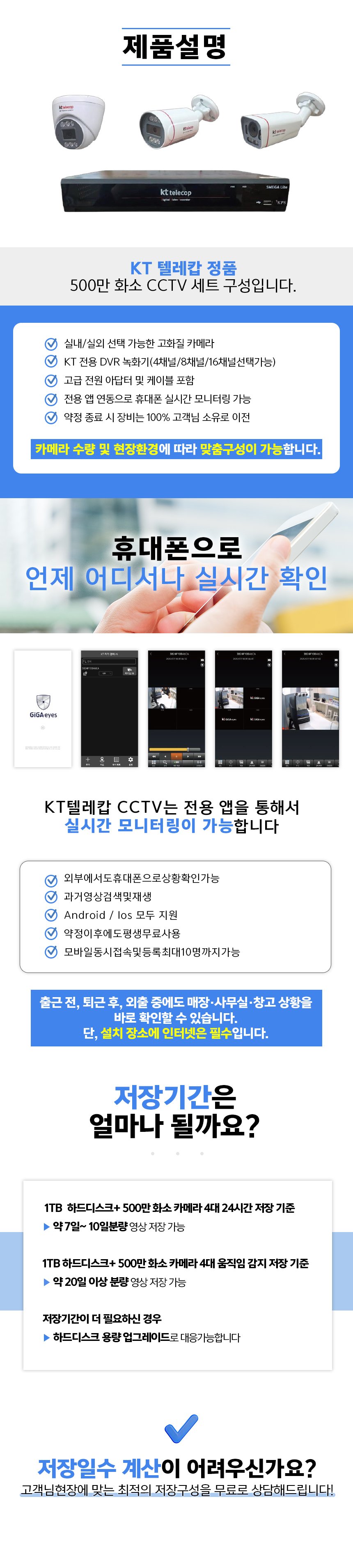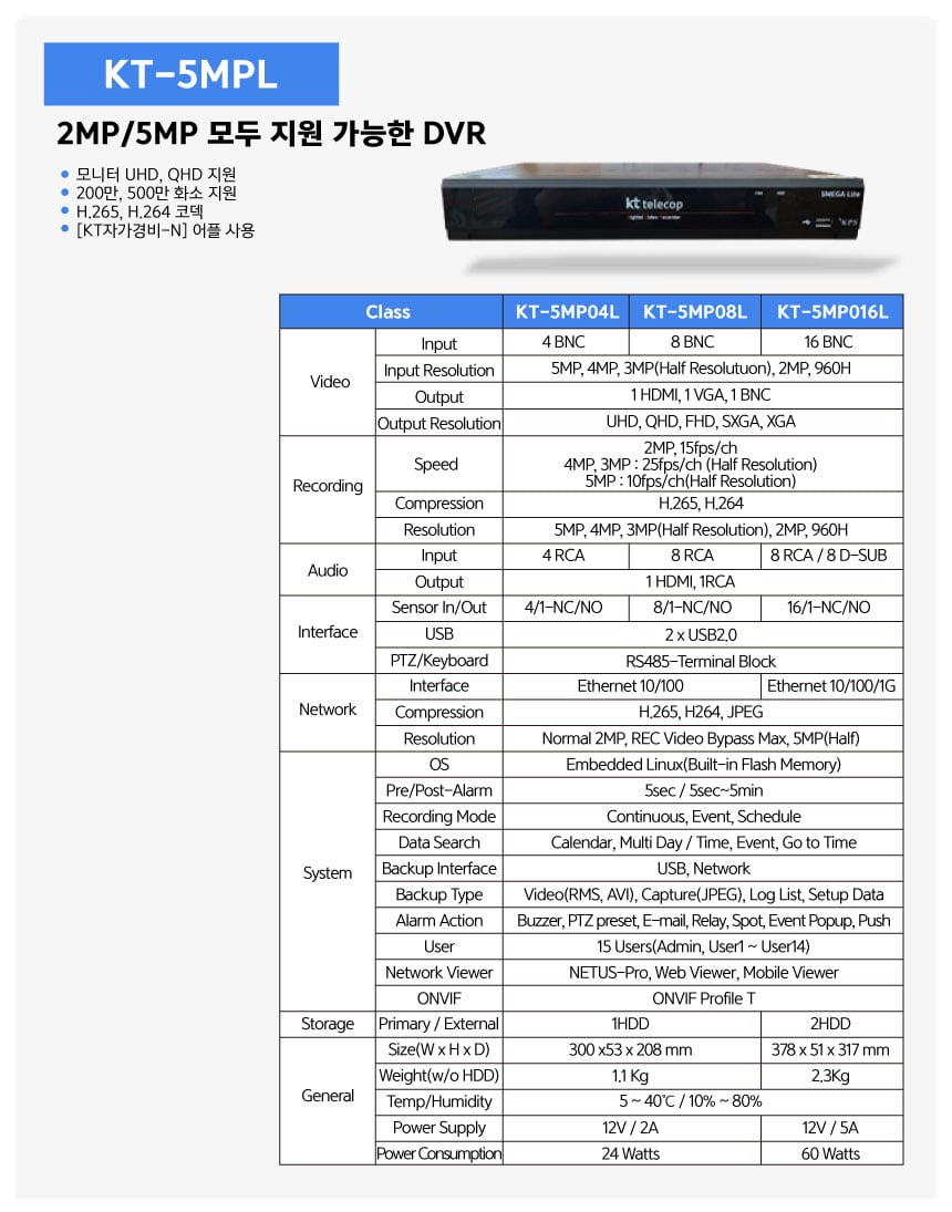 [KT텔레캅] CCTV 500만 화소 카메라 + 4채널 녹화기 DVR