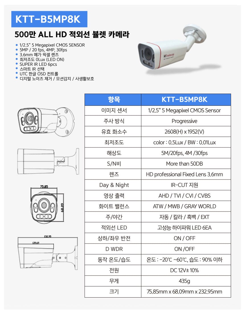 KTT-B5MP8K 크기