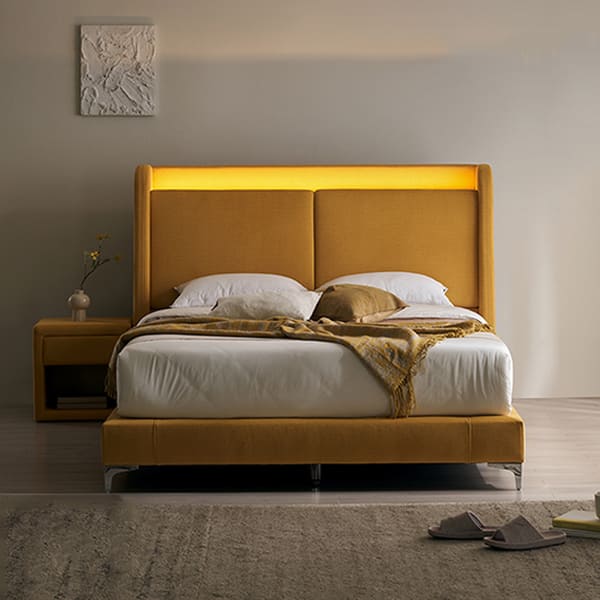 [쉐우드] 루아벨 평상형 LED 패브릭 침대 프레임 LK + 협탁