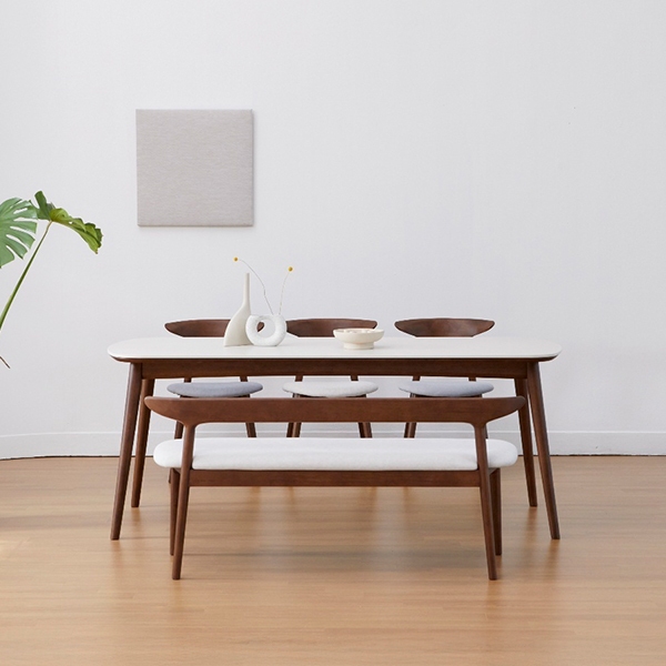 [헨지디자인] 카일리 6인 포세린 식탁 벤치형 세트 (의자3+벤치1)