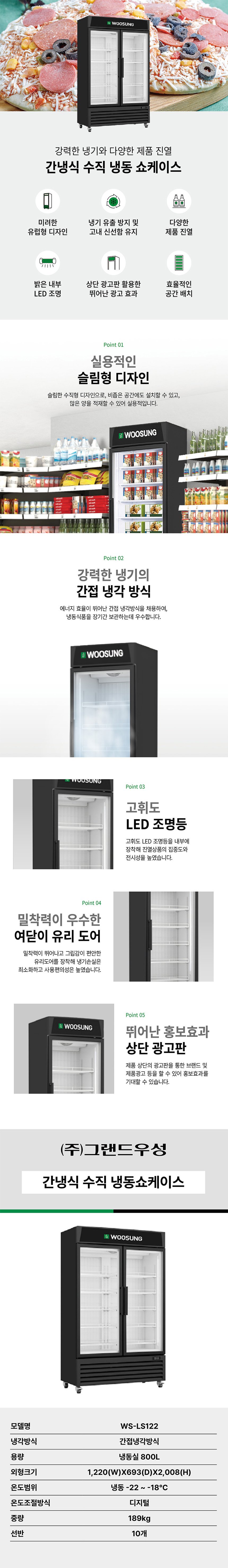 [그랜드우성] 간냉식 수직 냉동 쇼케이스 800L (블랙)