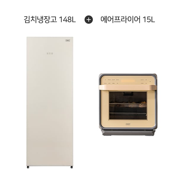 [풀무원] 김치냉장고 1도어 148L (린넨베이지) + 스팀쿡 플러스 에어프라이어 15L (옐로그레이)