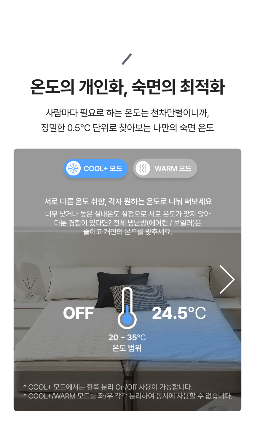 COOL+ 모드 20~35℃ / WARM 모드 28~45℃