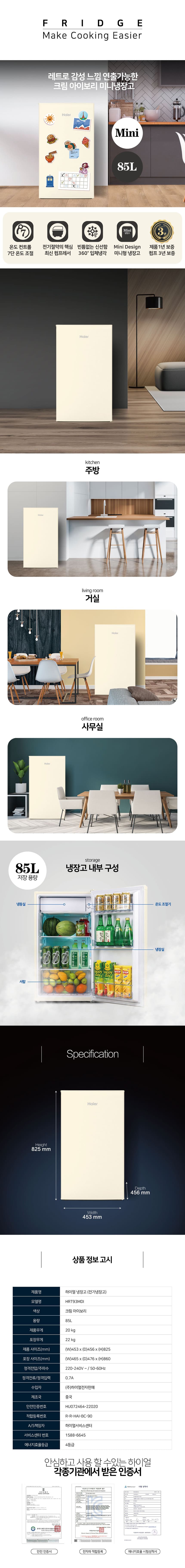 [하이얼] 소형 미니 1도어 냉장고 85L (크림 아이보리)