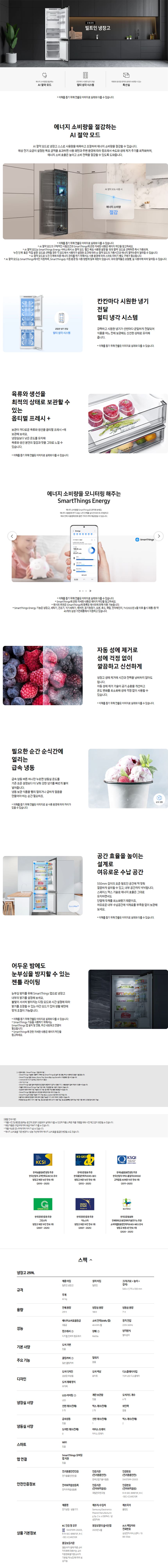 [삼성] 가구부착형 빌트인 냉장고 259L (화이트)
