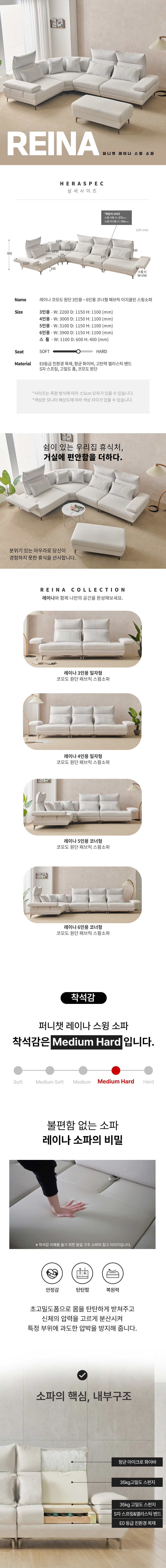 레이나 3인용 직선형 소파