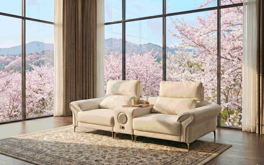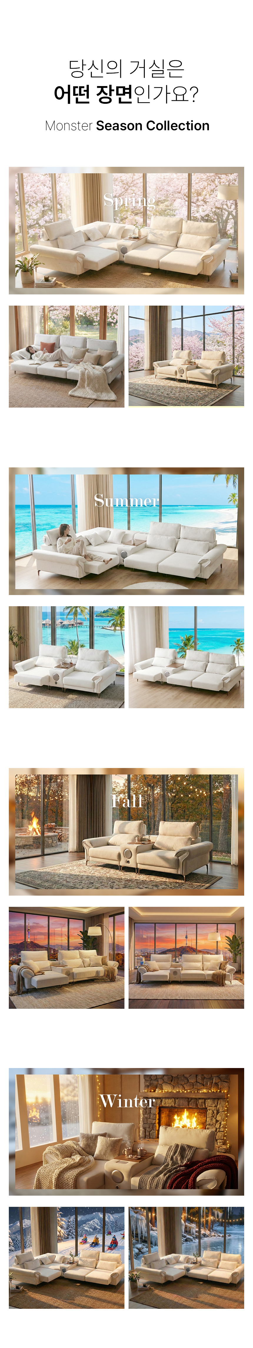 [퍼니챗] 몬스터 3인용 직선형 모션 슬라이드 무빙 리클라이너 패브릭 소파 (아이보리)