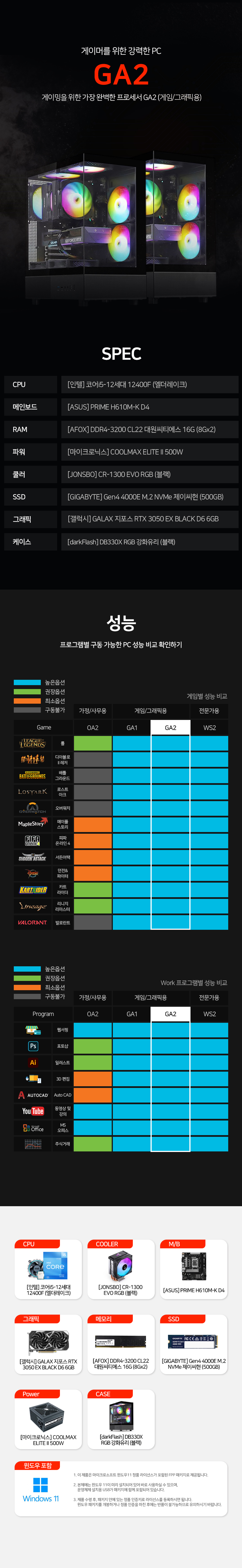 [게임용/그래픽용] i5 12400F RTX3050 16GB 500GB 게이밍PC 컴퓨터 GA2 + 게이밍 모니터 32인치