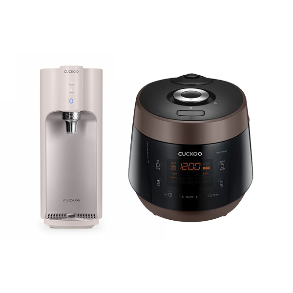 [쿠쿠] 100ºC 끓인 물 냉온정수기 (그레이스핑크) + 미식 컬렉션 전기압력밥솥 10인용 (브라운)