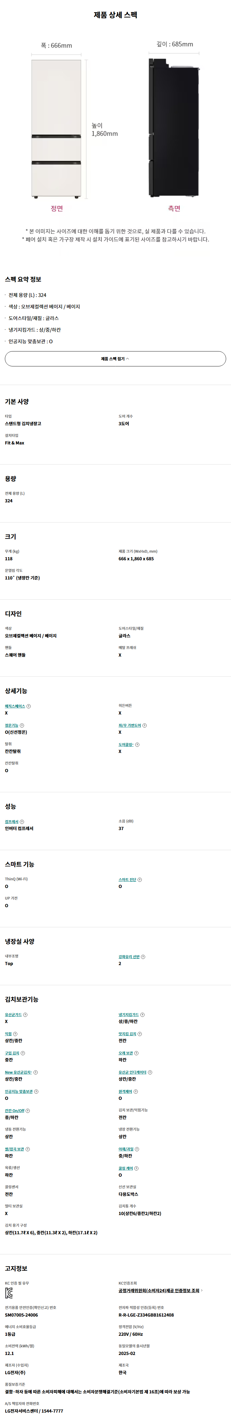 [LG] 디오스 오브제컬렉션 김치톡톡 Fit & Max 김치냉장고 324L (오브제컬렉션 베이지 / 베이지)