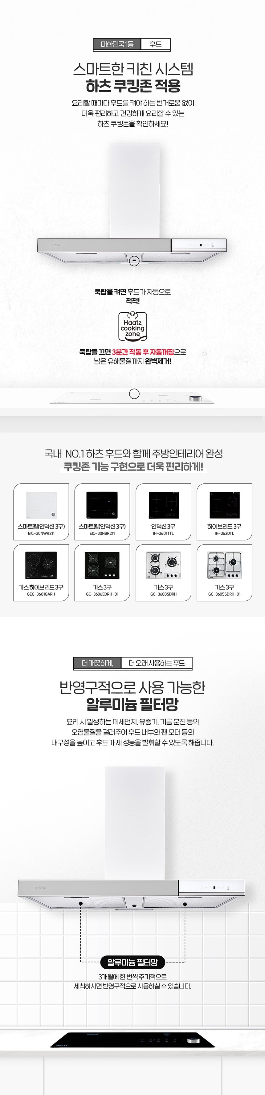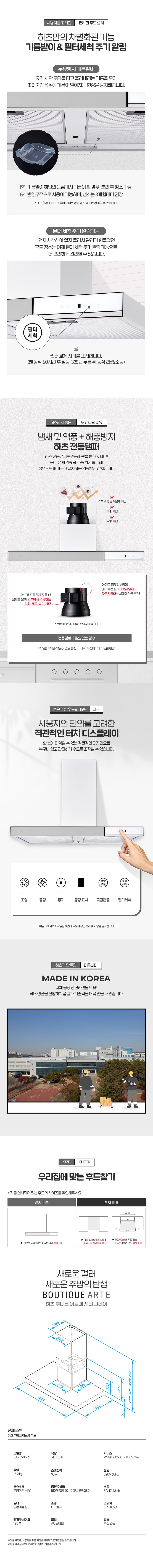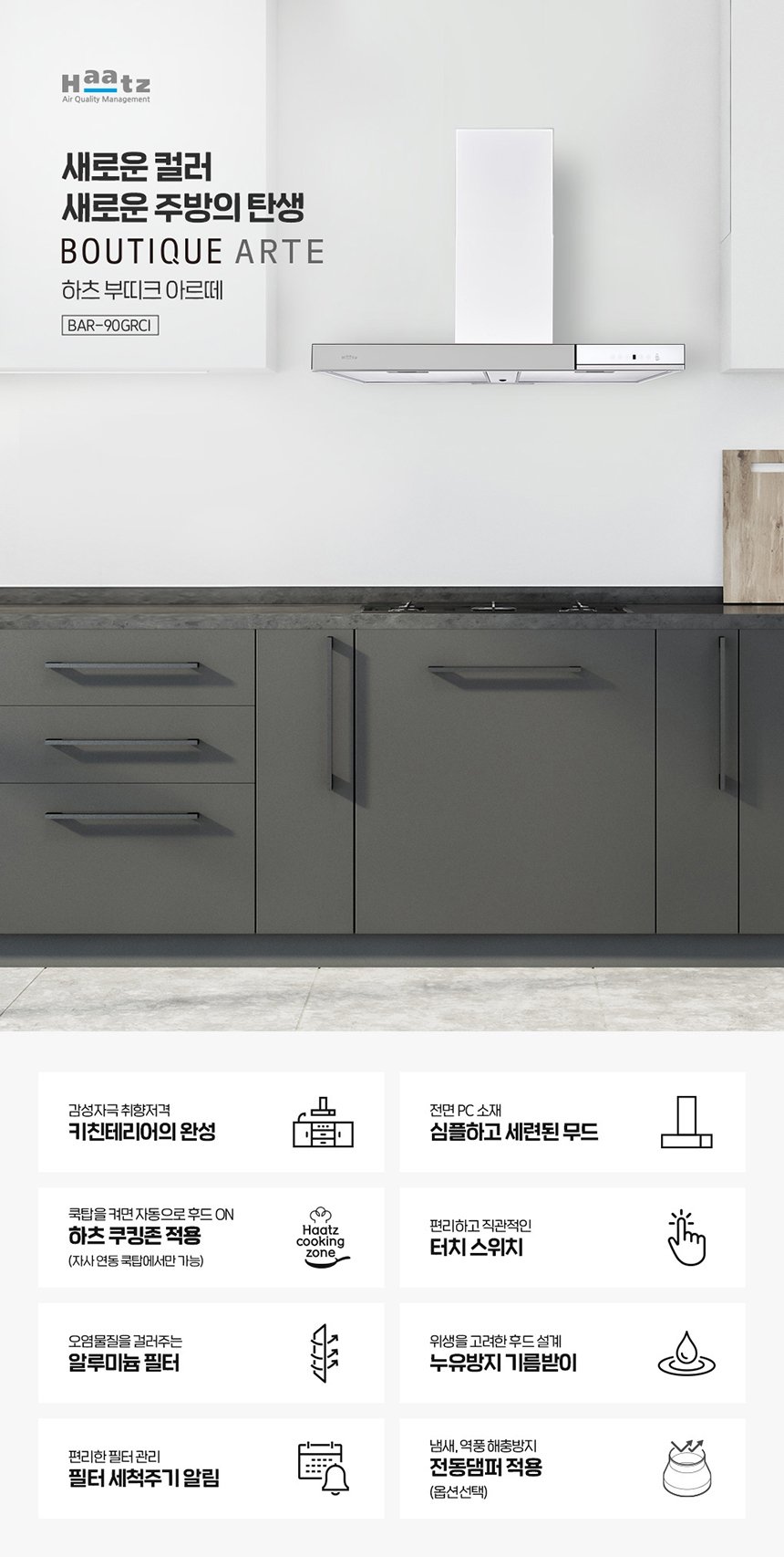 [하츠] 부띠끄 아르떼 주방후드 (시티 그레이) + 부띠크 인덕션